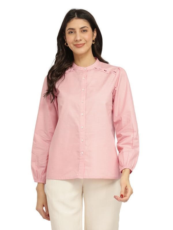 FableStreet Cotton Blend Mandarin Collar Top – Pink