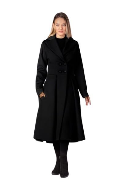- Double-Breasted Design:The coat is double-breasted, meaning it has overlapping front panels with two parallel columns of buttons. This design is often associated with a refined and stylish look.Princess Cut:The princess cut design suggests a fitted bodice and a flared skirt, emphasizing the waist and providing an elegant silhouette.